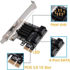 - 1X PCIE 4 SATA has four SATA 3.0 ports, can connect four SATA hard drives at once, and can transmit data at up to 6 Gbps.